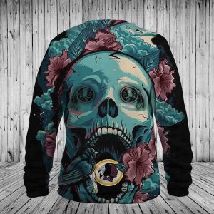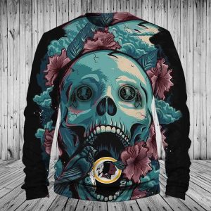 Men / Women Washington Redskins 3D Flower Skull Sweatshirt, Washington Redskins Sweatshirt, NFL Washington Redskins Apparel