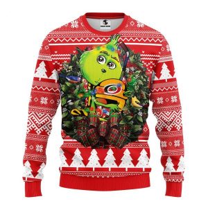 NHL Carolina Hurricanes Grinch Hug Ugly Christmas Fleece Sweater
