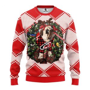 NHL Carolina Hurricanes Pug Dog Ugly Christmas Fleece Sweater