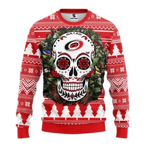 NHL Carolina Hurricanes Skull Flower Ugly Christmas Fleece Sweater