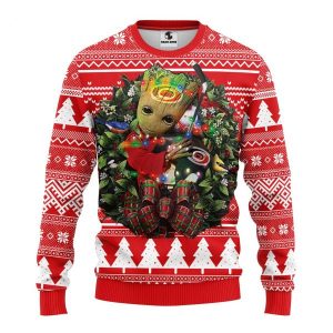 NHL Carolina Hurricanes Groot Hug Ugly Christmas Fleece Sweater