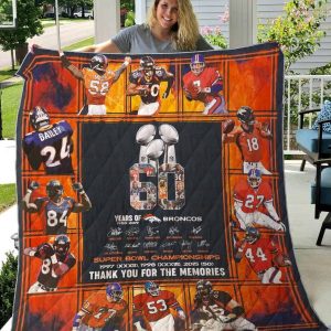 Denver Broncos 3 Time Super Bowl Championships Quilt Blanket – Striking Denver Broncos Thank you for memories 100% Cotton Fabric Quilt – NFL National Football League Super Bowl Denver Broncos Quilt