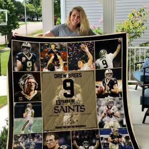 Drew Brees 13 Years New Orleans Saints Quilt – Drew Brees New Orleans Saints Thank You For Memories Quilt Blanket – Skiting NFL National Football League Drew Brees Quilt