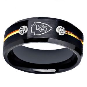 Kansas City Chiefs Ring – Golden Groove Design with Stone Accents (Full box ring)