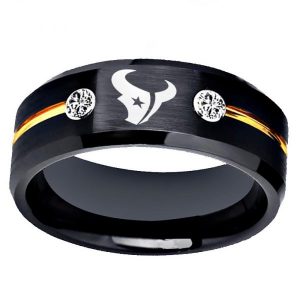 Houston Texans Ring – Golden Groove Design with Stone Accents (Full box ring)