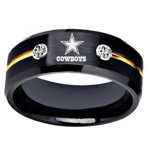 Dallas Cowboys Ring – Golden Groove Design with Stone Accents (Full box ring)