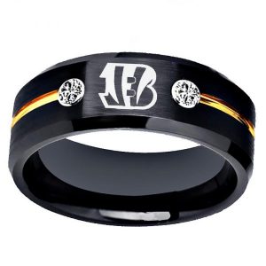 Cincinnati Bengals Ring – Golden Groove Design with Stone Accents (Full box ring)
