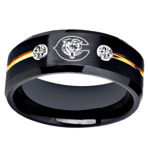 Chicago Bears Ring – Golden Groove Design with Stone Accents (Full box ring)