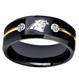 Carolina Panthers Ring – Golden Groove Design with Stone Accents (Full box ring)