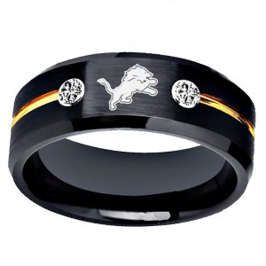 Detroit Lions Ring – Golden Groove Design with Stone Accents (Full box ring)