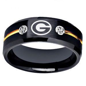 Green Bay Packers Ring – Golden Groove Design with Stone Accents (Full box ring)