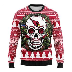 NFL Arizona Cardinals Skull Flower Ugly Christmas Fleece Sweater
