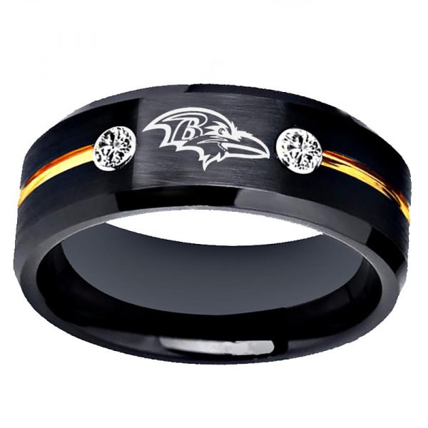 Baltimore Ravens Ring – Golden Groove Design with Stone Accents (Full box ring)