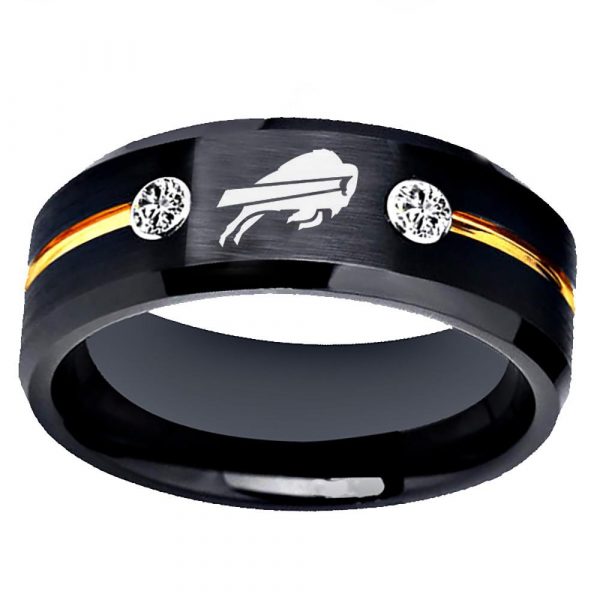 Buffalo Bills Ring – Golden Groove Design with Stone Accents (Full box ring)