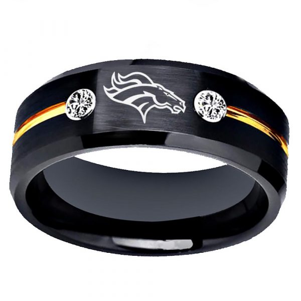 Denver Broncos Ring – Golden Groove Design with Stone Accents (Full box ring)