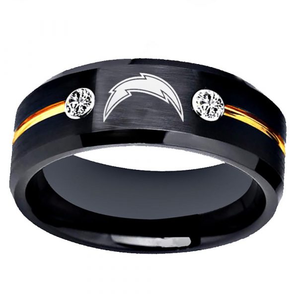 Los Angeles Chargers Ring – Golden Groove Design with Stone Accents (Full box ring)