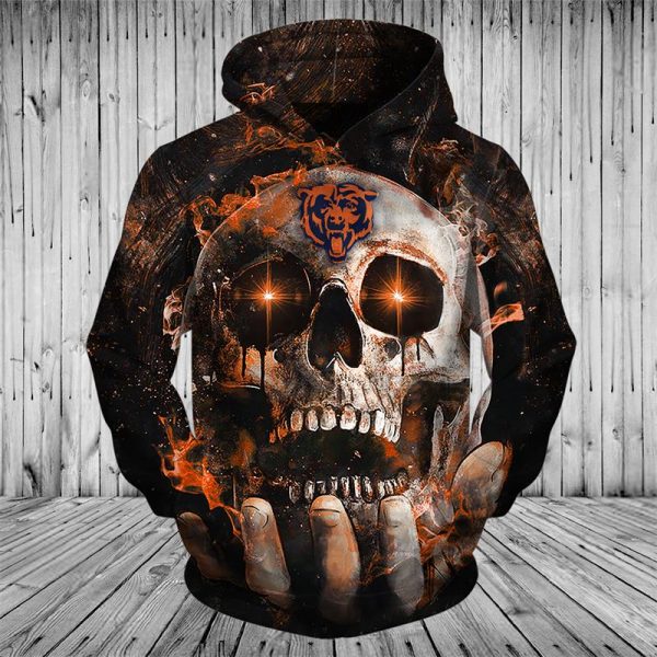 Men / Women Chicago Bears 3D Skull Hoodie, Chicago Bears Hoodie, NFL Chicago Bears Apparel