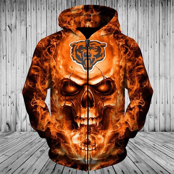 Men / Women Chicago Bears 3D Skull Zipper Hoodie, Chicago Bears Zipper Hoodie, NFL Chicago Bears Apparel