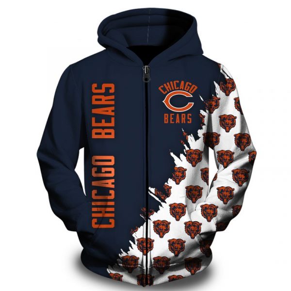 Men / Women Chicago Bears 3D Zipper Hoodie, Chicago Bears Zipper Hoodie, NFL Chicago Bears Apparel
