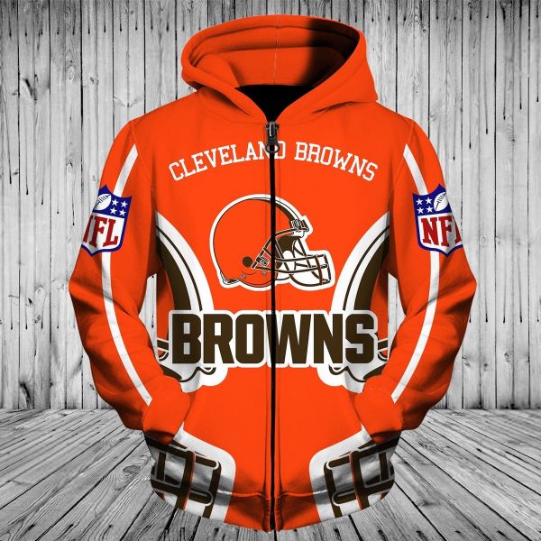 Men / Women Cleveland Browns 3D Zipper Hoodie, Cleveland Browns Zipper Hoodie, NFL Cleveland Browns Apparel
