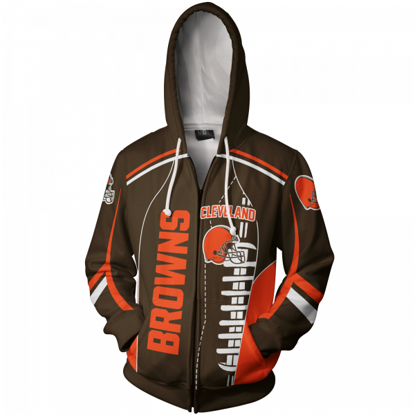 Men / Women Cleveland Browns 3D Zipper Hoodie, Cleveland Browns Zipper Hoodie, NFL Cleveland Browns Apparel