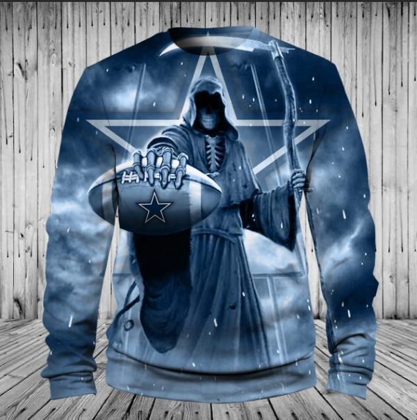 Men / Women Dallas Cowboys 3D Death Skull Sweatshirt, Dallas Cowboys Sweatshirt, NFL Dallas Cowboys Apparel