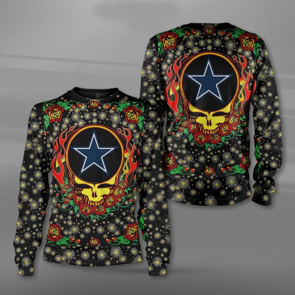 Men / Women Dallas Cowboys 3D Skull Flower Sweatshirt, NFL Dallas Cowboys Apparel