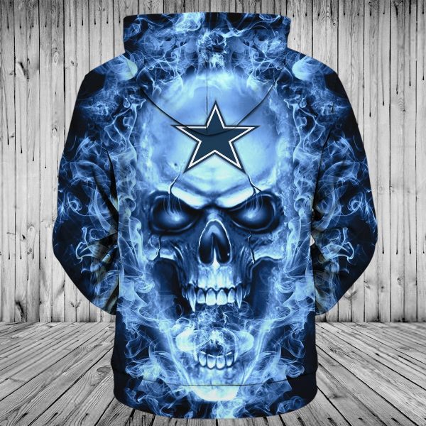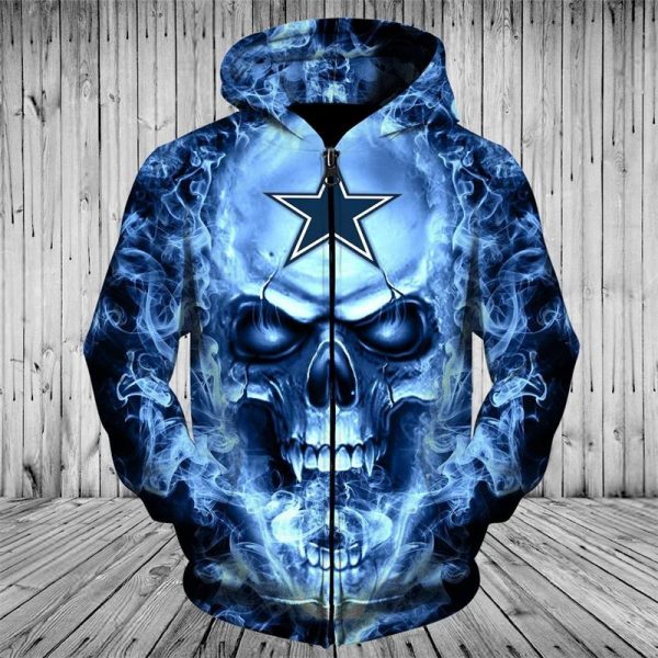 Men / Women Dallas Cowboys 3D Skull Zipper Hoodie, Dallas Cowboys Zipper Hoodie, NFL Dallas Cowboys Apparel