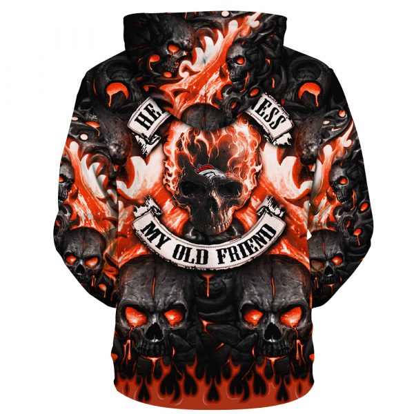 Men / Women Denver Broncos Hello Darkness My Old Friend 3D Skull Zipper Hoodie, Zipper Hoodie for Denver Broncos Fans, NFL Denver Broncos Apparel