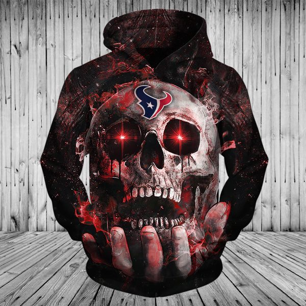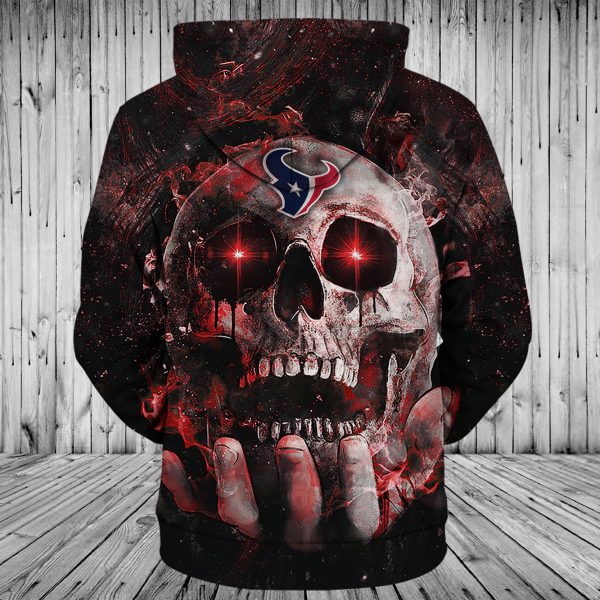 Men / Women Houston Texans 3D Skull Hoodie, Houston Texans Hoodie, NFL Houston Texans Apparel
