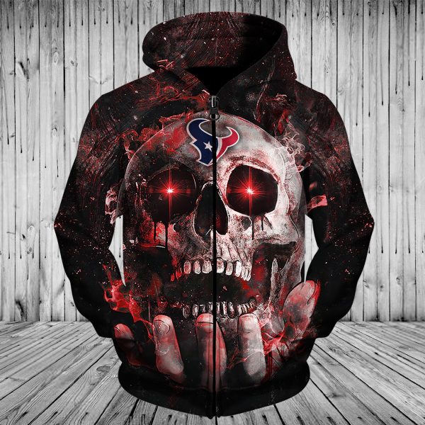 Men / Women Houston Texans 3D Skull Zipper Hoodie, Houston Texans Zipper Hoodie, NFL Houston Texans Apparel