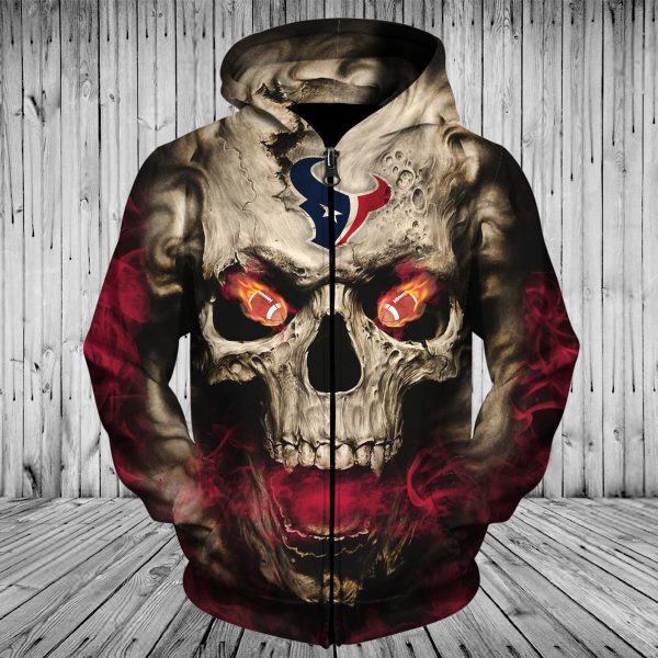 Men / Women Houston Texans 3D Skull Zipper Hoodie, Houston Texans Zipper Hoodie, NFL Houston Texans Apparel