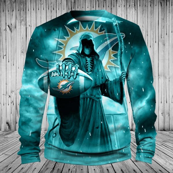 Men / Women Miami Dolphins 3D Death Skull Sweatshirt, Miami Dolphins Sweatshirt, NFL Miami Dolphins Apparel