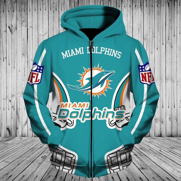 Men / Women Miami Dolphins 3D Zipper Hoodie, Miami Dolphins Zipper Hoodie, NFL Miami Dolphins Apparel