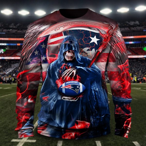 Men / Women New England Patriots 3D Death Skull Sweatshirt, New England Patriots Sweatshirt, NFL New England Patriots Apparel
