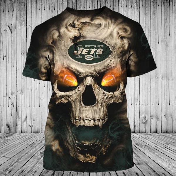 Men / Women New York Jets 3D Skull T-Shirt, New York Jets T-Shirt, NFL New York Jets Apparel