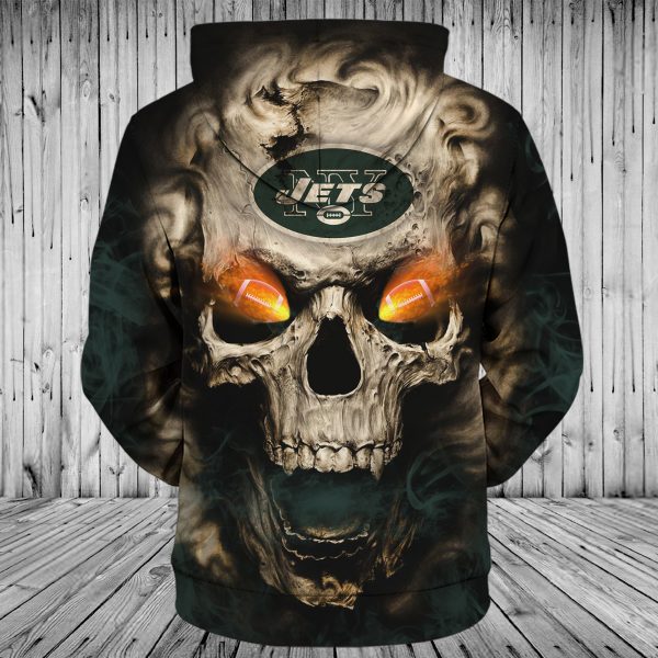Men / Women New York Jets 3D Skull Zipper Hoodie, New York Jets Zipper Hoodie, NFL New York Jets Apparel