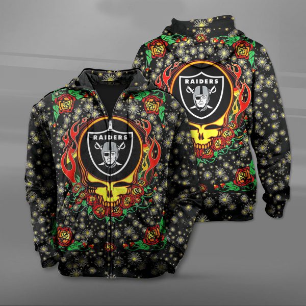 Men / Women Oakland Raiders 3D Skull Flower Zipper Hoodie, NFL Oakland Raiders Apparel