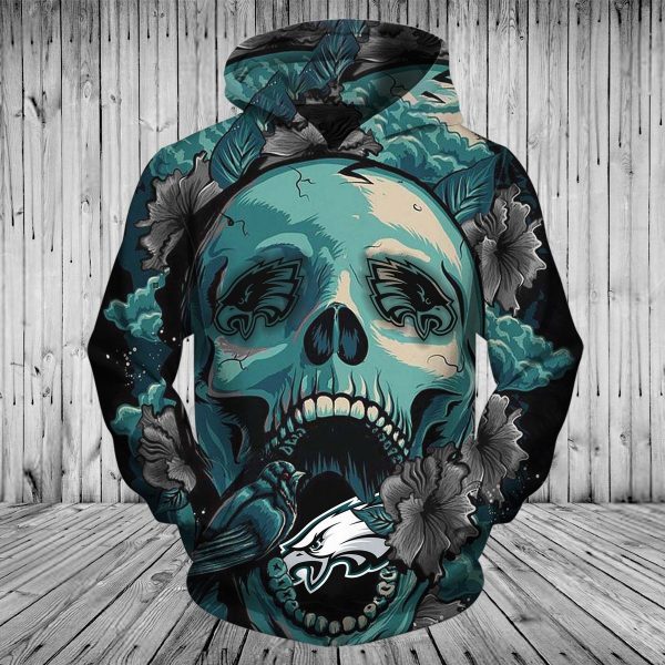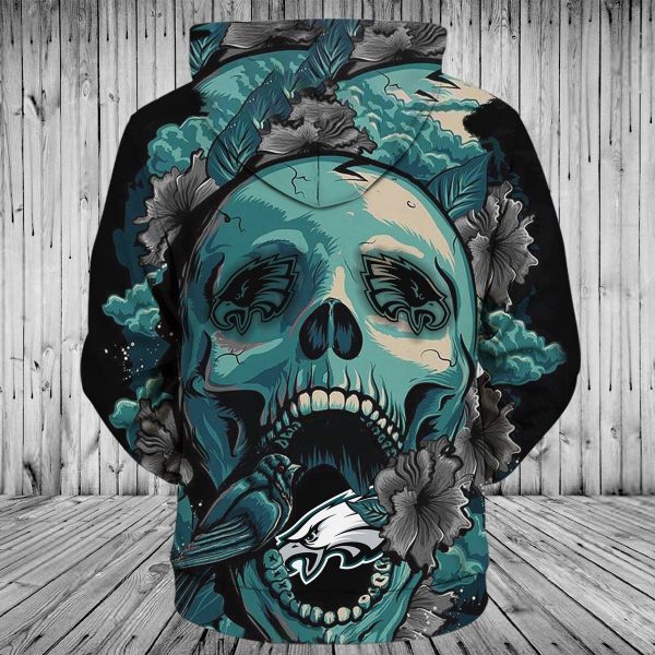 Men / Women Philadelphia Eagles 3D Skull Flower Hoodie, Philadelphia Eagles Hoodie, NFL Philadelphia Eagles Apparel