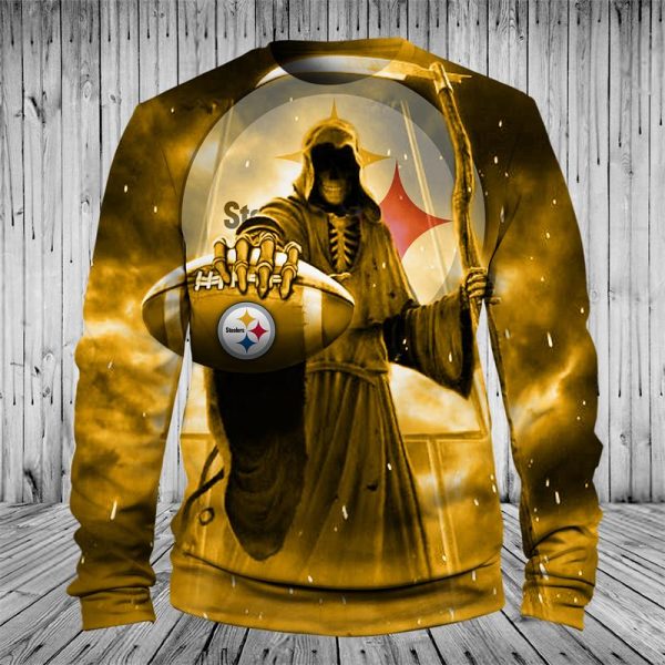 Men / Women Pittsburgh Steelers 3D Death Skull Sweatshirt, Pittsburgh Steelers Sweatshirt, NFL Pittsburgh Steelers Apparel