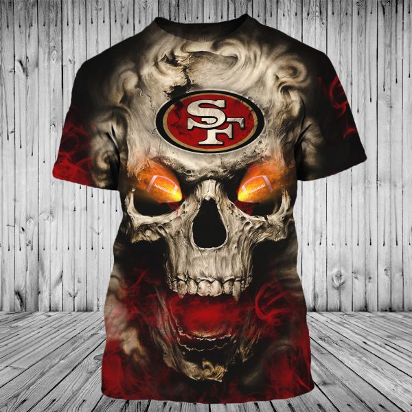 Men / Women San Francisco 49ers 3D Skull T-Shirt, San Francisco 49ers T-Shirt, NFL San Francisco 49ers Apparel