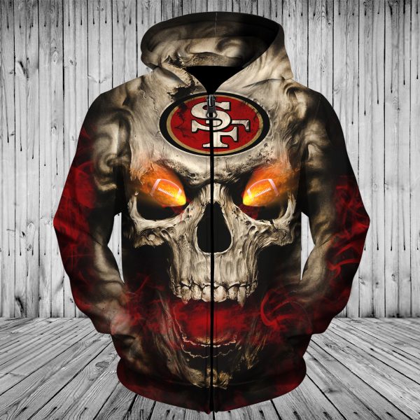Men / Women San Francisco 49ers 3D Skull Zipper Hoodie, San Francisco 49ers Zipper Hoodie, NFL San Francisco 49ers Apparel