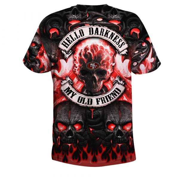 Men / Women San Francisco 49ers Hello Darkness My Old Friend 3D Skull T-shirt, T-shirt for San Francisco 49ers Fans, NFL San Francisco 49ers Apparel