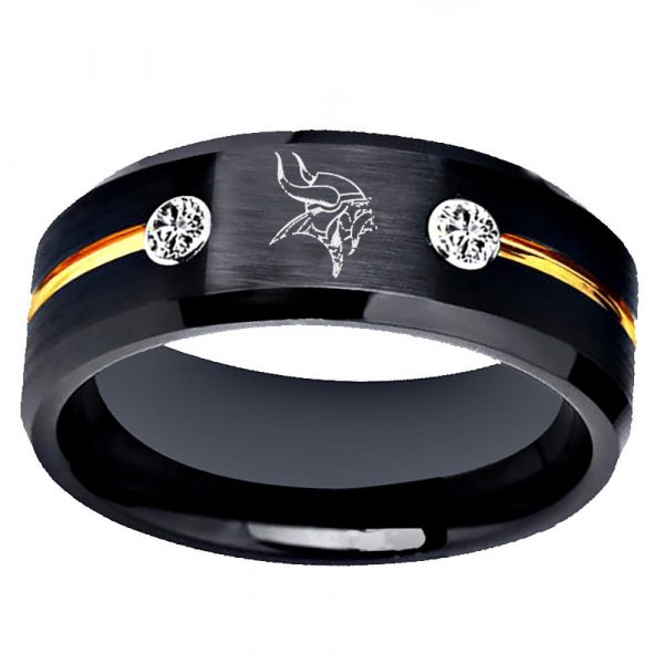 Minnesota Vikings Ring – Golden Groove Design with Stone Accents (Full box ring)