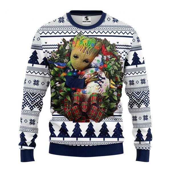 MLB New York Yankees Groot Hug Ugly Christmas Fleece Sweater