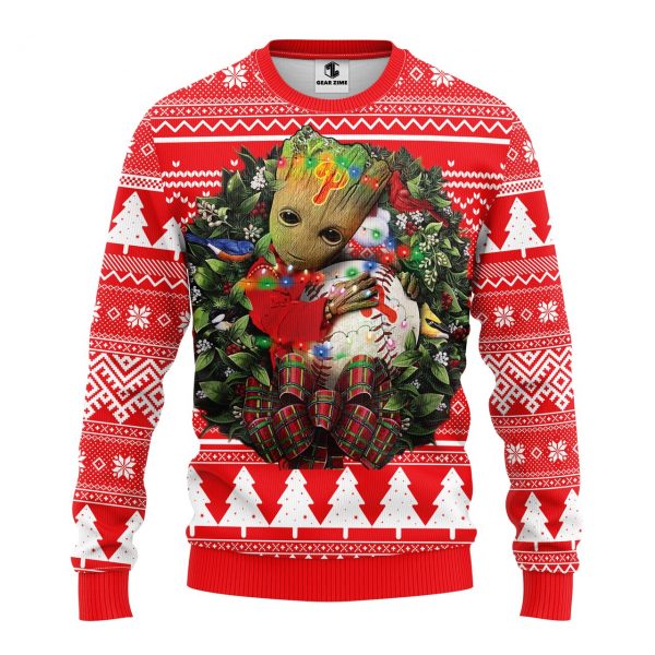 MLB Philadelphia Phillies Groot Hug Ugly Christmas Fleece Sweater