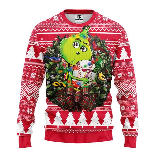 MLB St. Louis Cardinals Grinch Hug Ugly Christmas Fleece Sweater