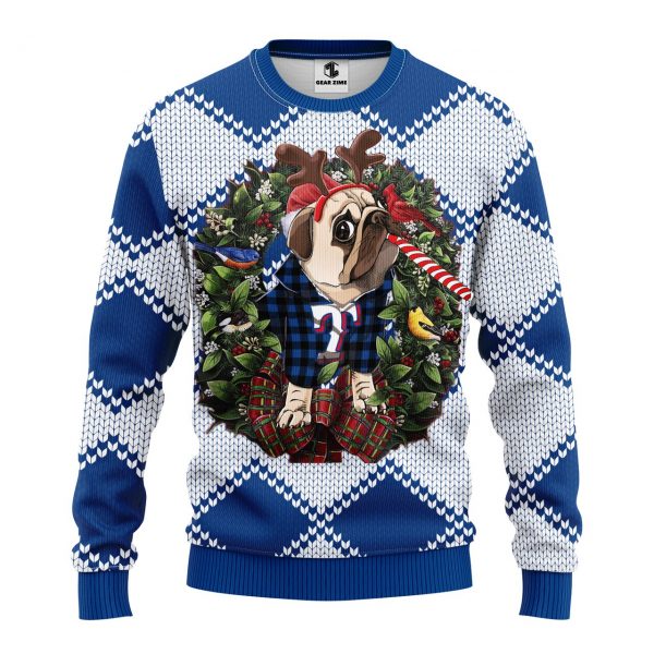 MLB Texas Rangers Pug Dog Ugly Christmas Fleece Sweater