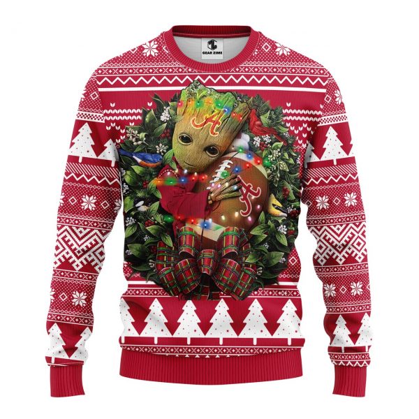 NCAA Alabama Crimson Tide Groot Hug Ugly Christmas Fleece Sweater