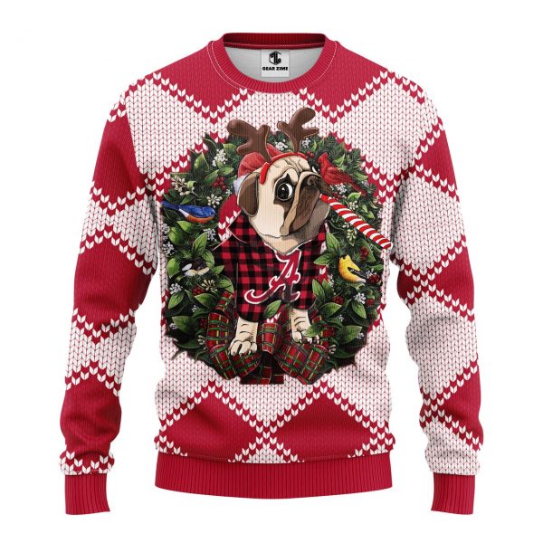 NCAA Alabama Crimson Tide Pug Dog Ugly Christmas Fleece Sweater